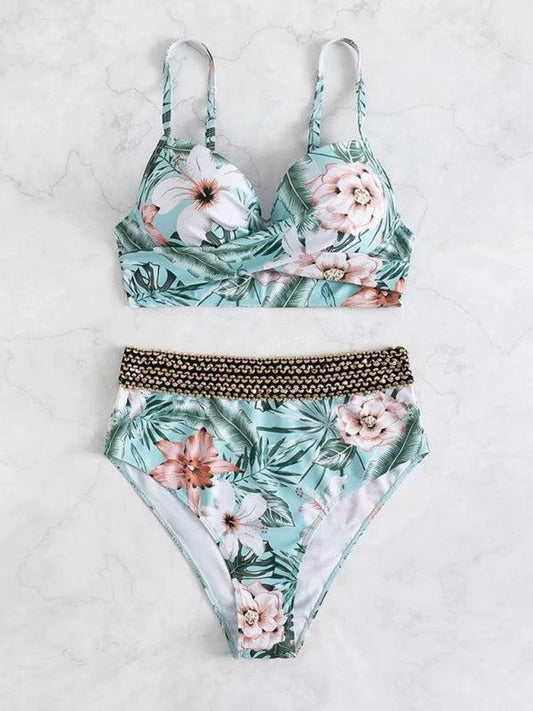 Floral Bustier Bikini, Vintage Tropical Print & High Waisted Bottoms