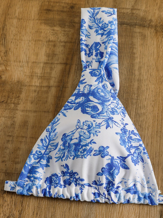 Blue & White Floral Bikini High-Waist Set with Wide Straps