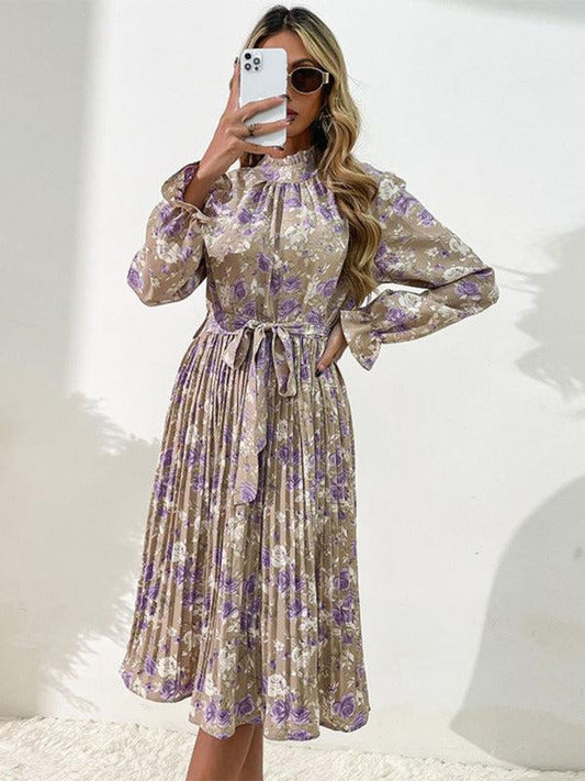 Women's Pleated Ruffle High Neck Dress