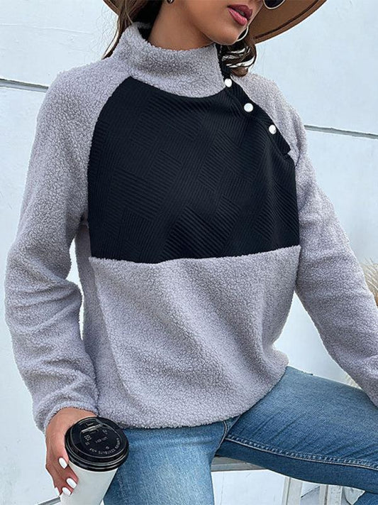 Women's High Pile Fleece Sweatshirt With Side Neck Button Fastening