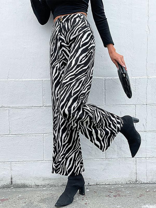 Women’s High-Waisted Printed Wide-Leg Trousers – Casual Flowy Fit