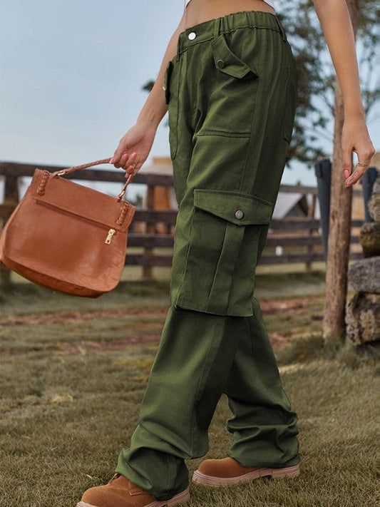 Women's Loose Fit Wide Leg Cargo Trousers With Multiple Pockets